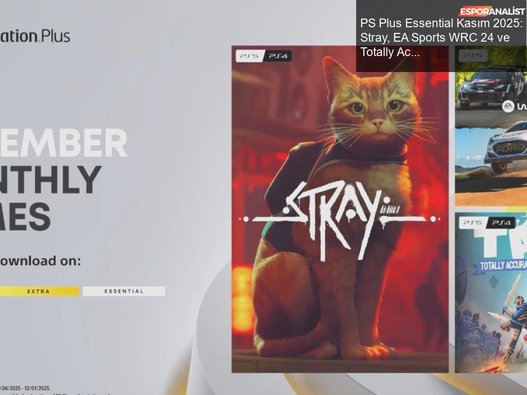 PS Plus Essential Kasım 2025 oyunları nihayet açıklandı ve heyecanla bekleyen PS Plus aboneleri için müjdeli haberler var! Yine billbil-kun’un sızdırdığı bilgiler doğrulanmış durumda; Stray oyunu liste başında. Düşünsenize, bir kediyi yönetiyoruz ve bu kedi hiç de sıradan bir kedi değil; siberpunk bir dünyada kaybolmuş durumda. Yanında ise ralli tutkunları için EA Sports WRC 24 ve bilgi dolu sahneleriyle Totally Accurate Battle Simulator birbirine sıkı sıkıya sarılmış durumda. Hadi gelin bu oyunları biraz daha detaylı bir şekilde inceleyelim ve merak edilen yönlerine ışık tutalım!